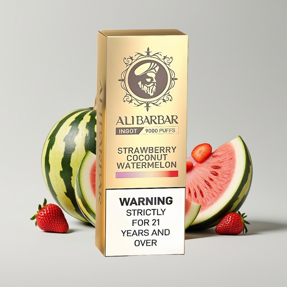 Alibarbar Ingot 9000 Puffs - فراولة جوز هند بطيخ، 22مل سعة، 9000 نَفخة، بطارية 2350 مللي أمبير