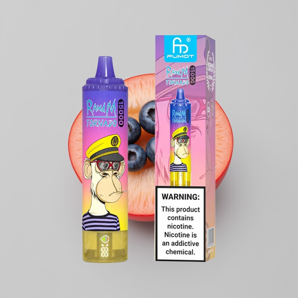 RandM Fumot Tornado 15000 نفخة - خوخ وتوت أزرق - ٢٥مل سائل - ٨٥٠مللي أمبير - شاشة إل سي دي