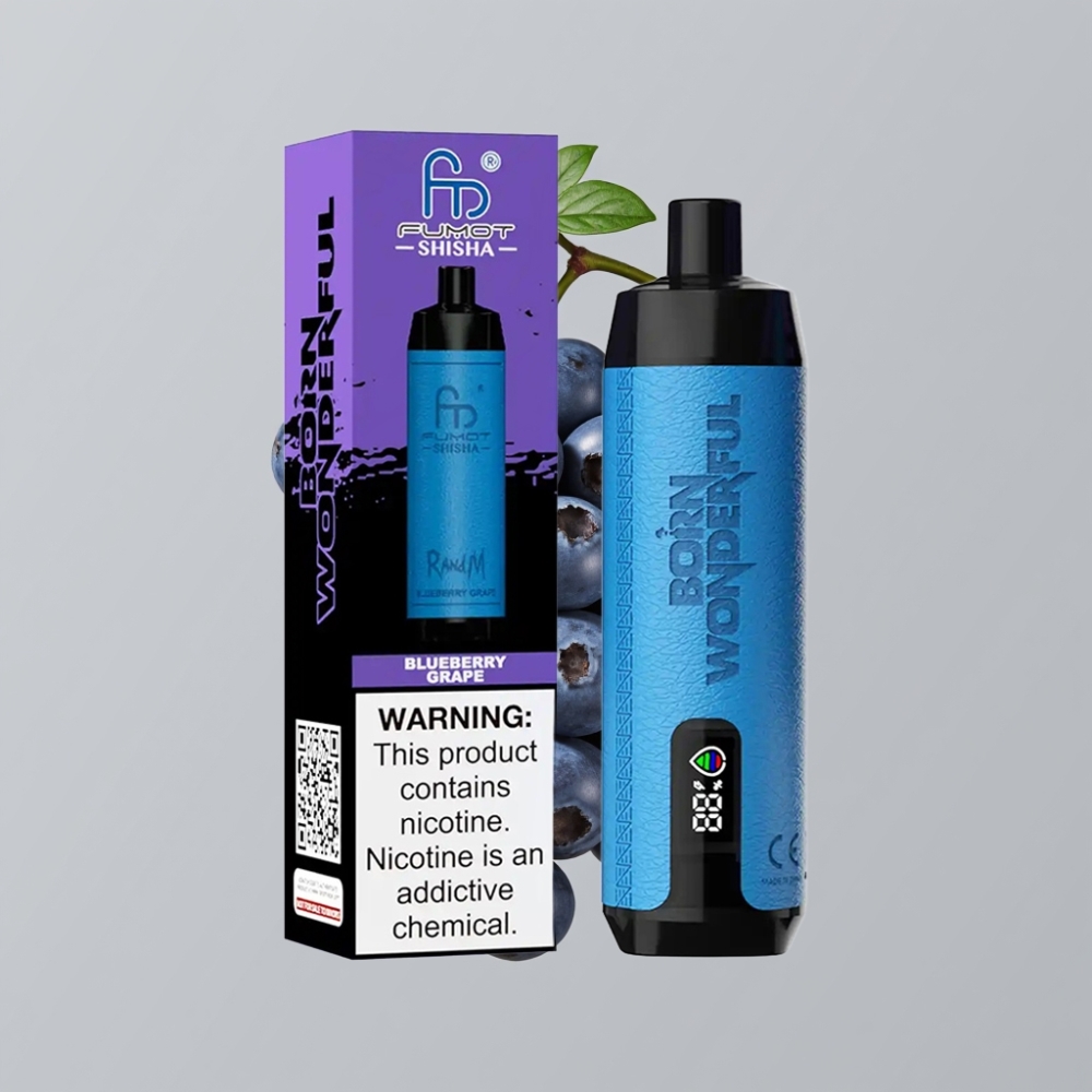 راند إم فوموت شيشا RandM Fumot Shisha 10000 نفثة فيب قابل للاستعمال مرة واحدة - مؤشر LED، 18 مل سائل، بطارية 850 مللي أمبير، عنب توت أزرق