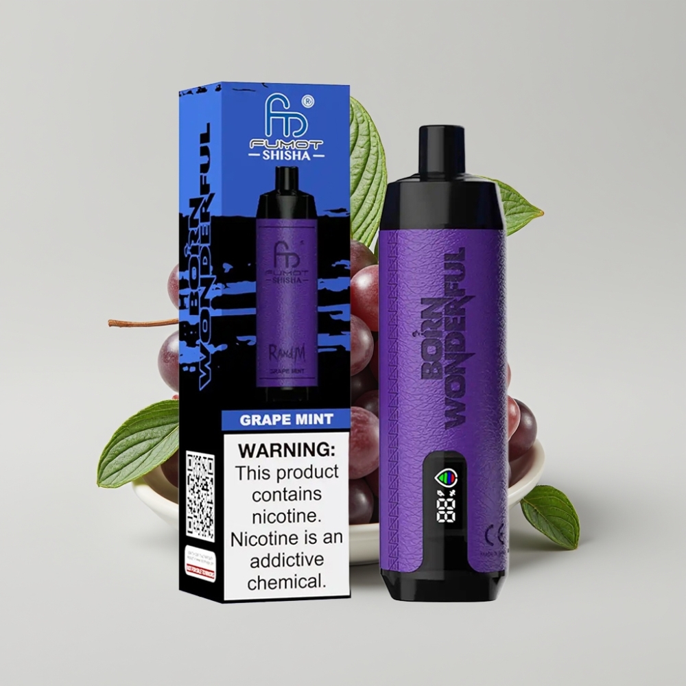 RandM Fumot Shisha 10000 نفثة - نكهة عنب بالنعناع، مؤشر LED، 18مل سائل، بطارية 850 مللي أمبير