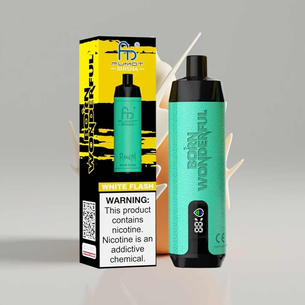 RandM Fumot Shisha 10000 نفث فلاش أبيض - 18مل عصير، 850 مللي أمبير، 0.6 أوم