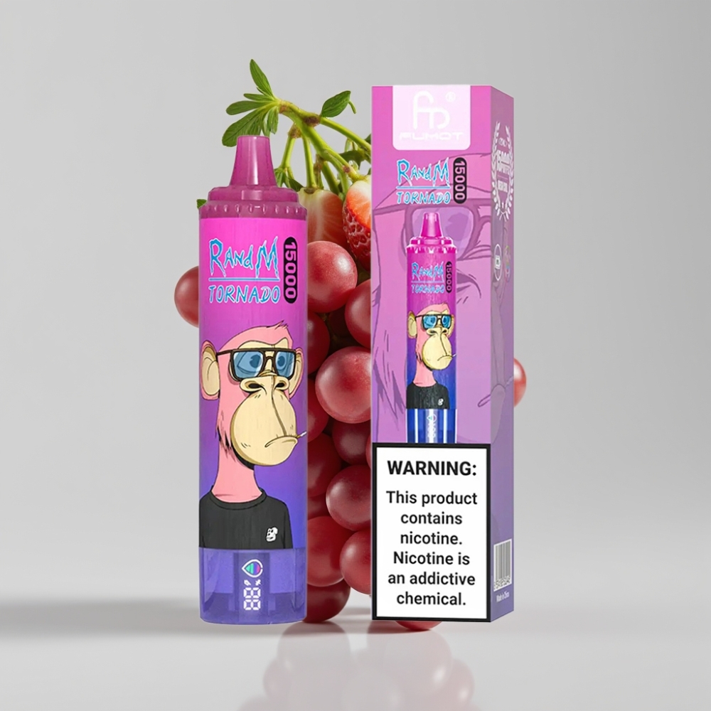 فوموت راندإم تورنيدو RandM Fumot Tornado 15000 نفخة بنكهة الفراولة والعنب - سعة 25مل، بطارية 850مللي أمبير، شاشة إل سي دي