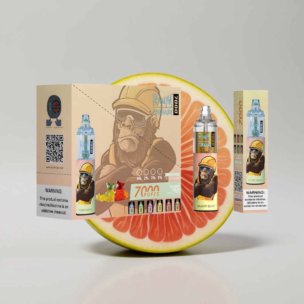 RandM Fumot Tornado 7000 نكهة غومي بير - 7000 نفخة، 14 مل، بطارية 850 مللي أمبير، ملف ميش